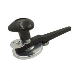 Машинка закаточная с полуавтоматическим перемещением ролика, предназначена для герметичной укупорки стеклянных банок типа 1-82 по ГОСТ 5717-91 жестяными крышками по ТУ 10.244.004-90. Ручка неподвижно соединена с диском , который насажен на ось ручки и прижат болтом к шайбе . Поводок с рукояткой свободно вращается на оси с возможностью радиального перемещения относительно нее. Мягкость вращения поводка обеспечивается пластмассовыми шайбами . Вращение поводка через скобу сообщается ходовой гайке , которая по резьбе перемещается по оси , посредством той же скобы перемещает в радиальном направлении поводок вместе с закаточным роликом , свободно вращающимся на оси.